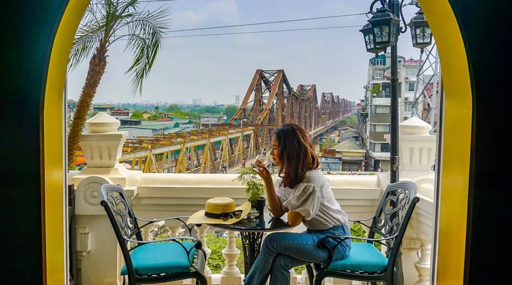 Why you should go: "Exclusive" view looking straight at the historic Long Bien Bridge and the train track.