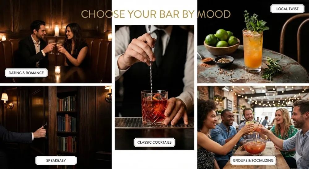 Not everyone wants the same kind of night. This section helps you choose based on your purpose: dating, quiet time, speakeasy style, classic tastes, or group fun.